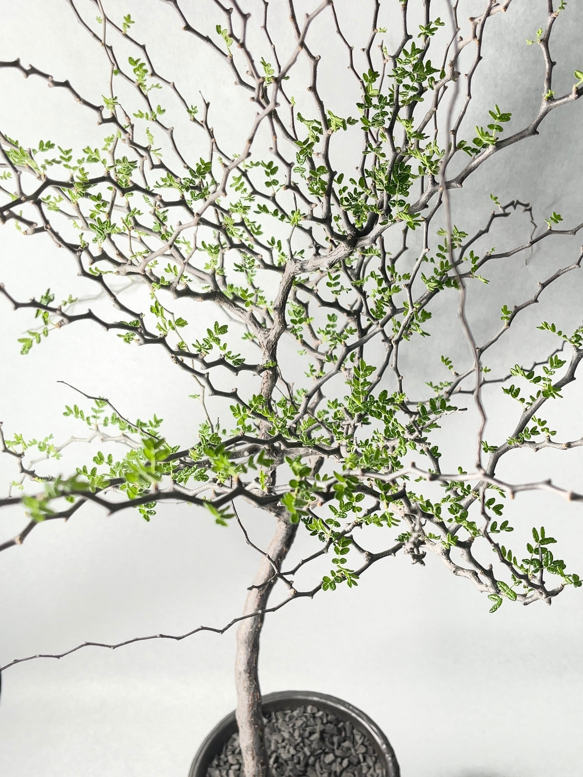 特殊な枝で展開する鮮やかな緑の彩り。