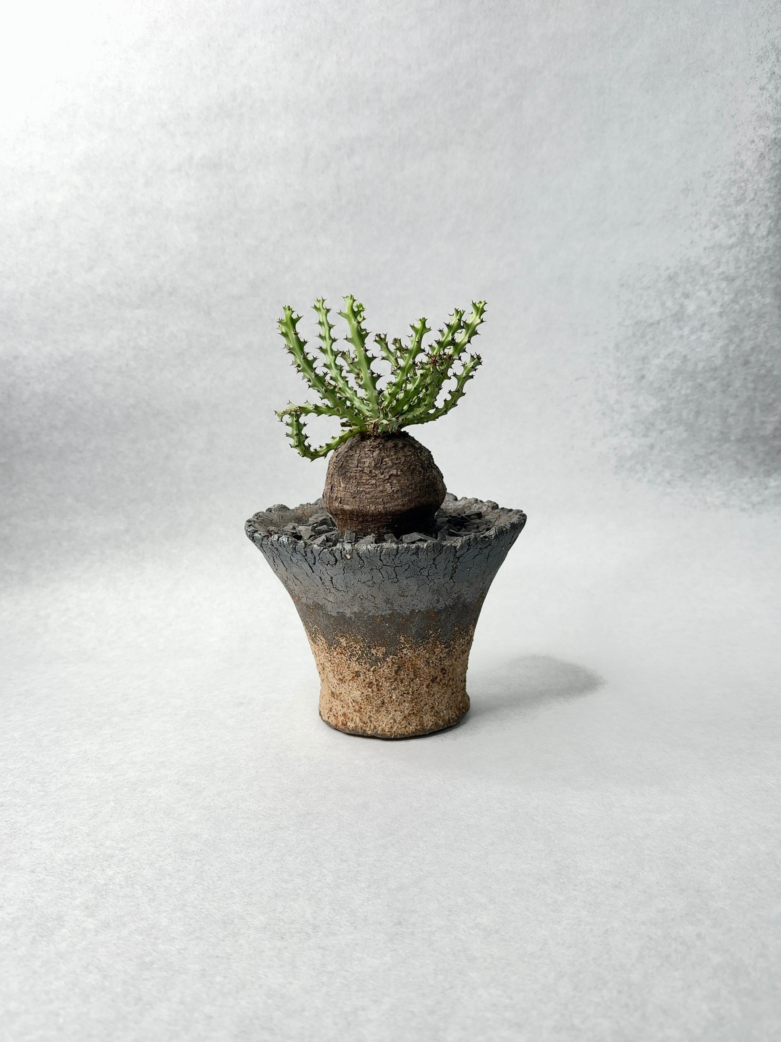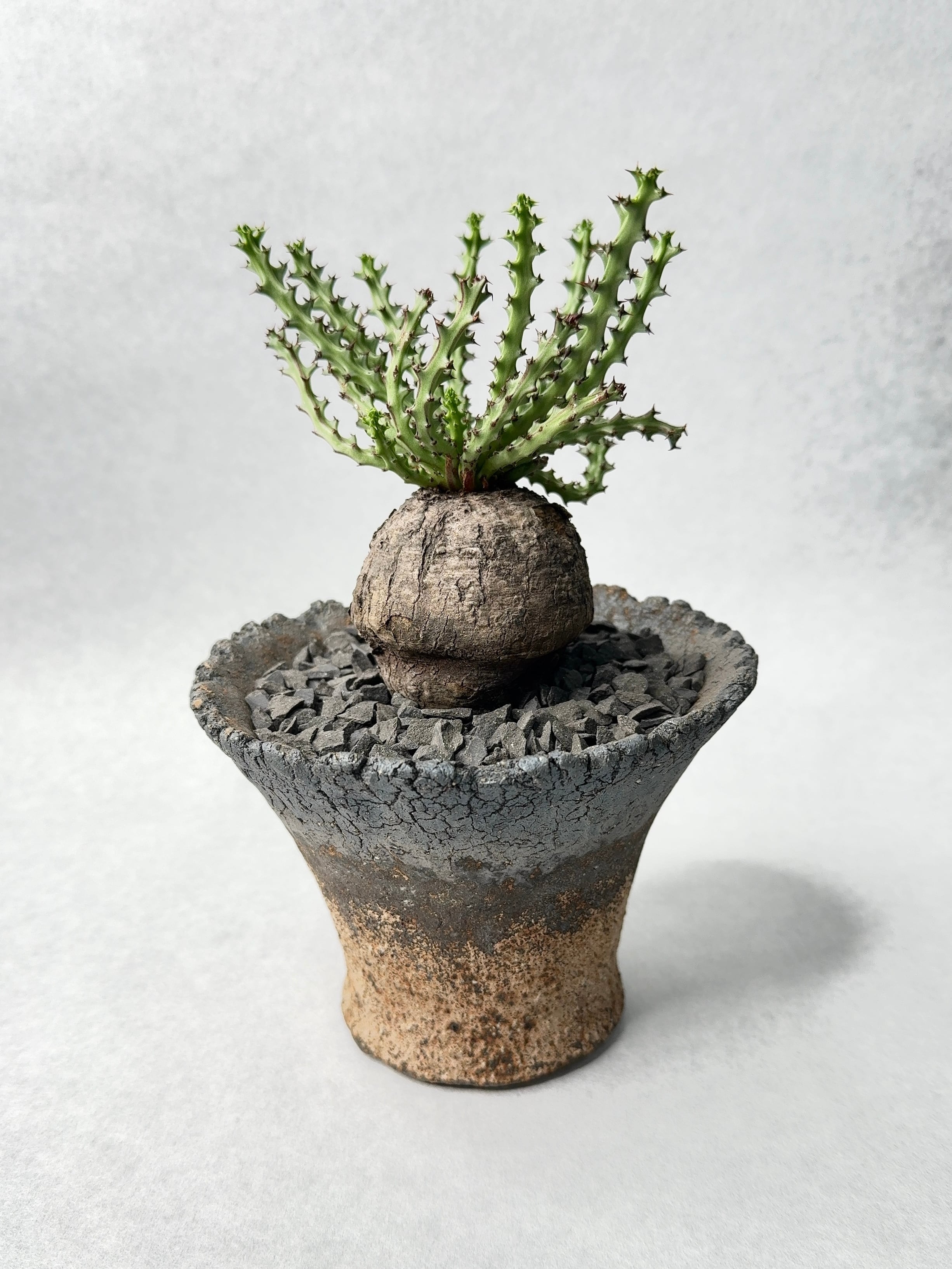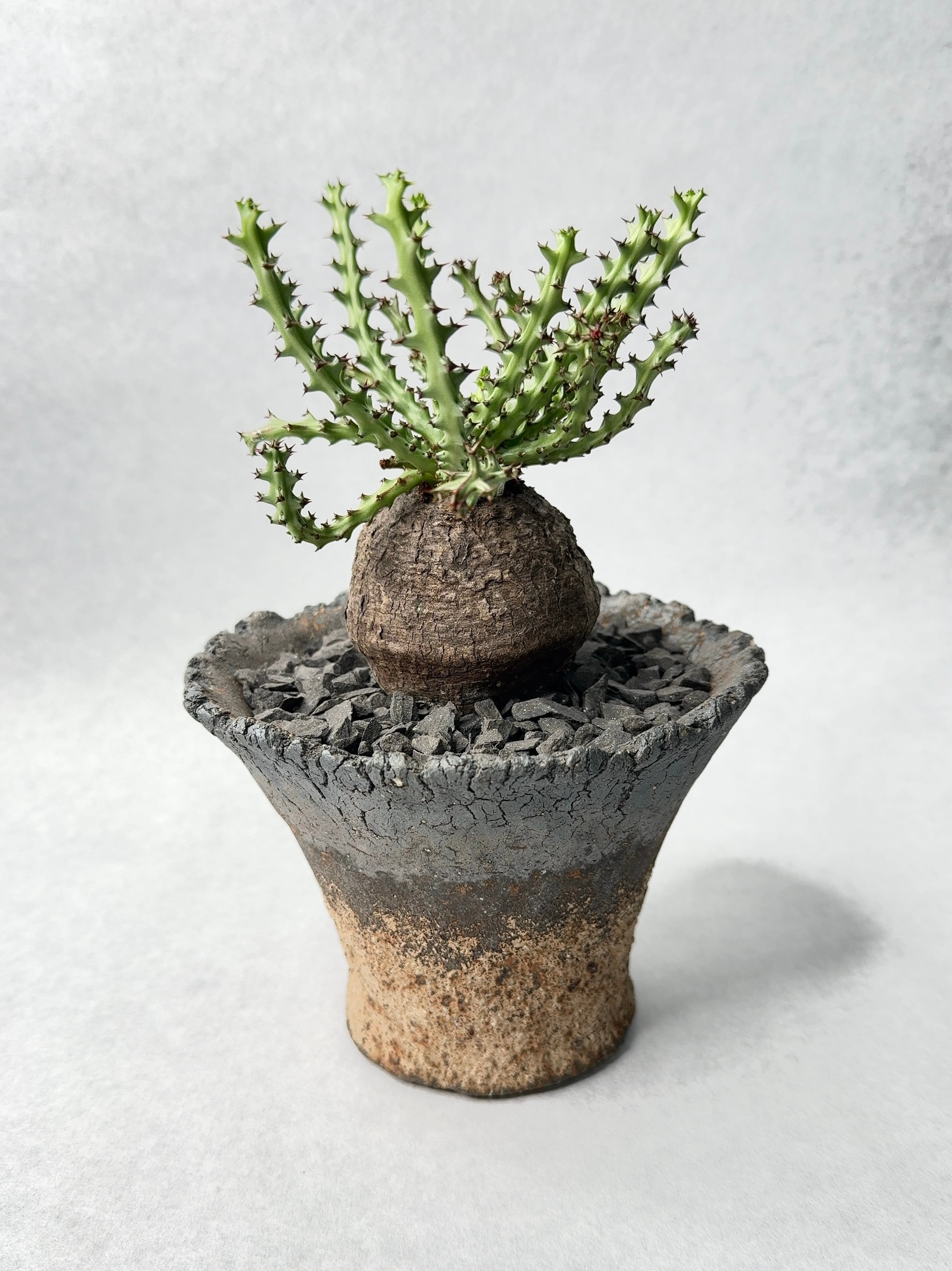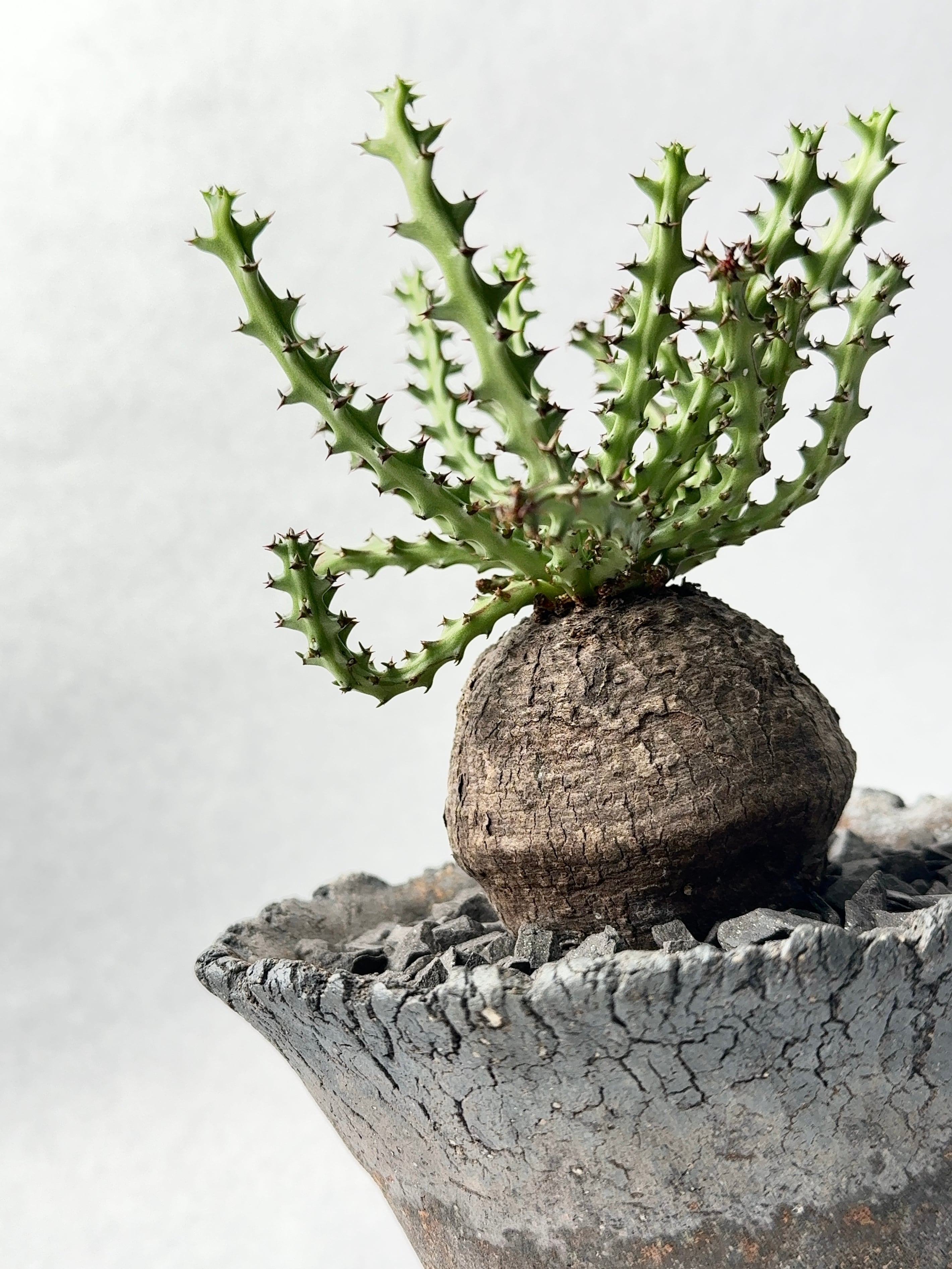 時間を感じる塊根部に、新しい鮮やかな枝。