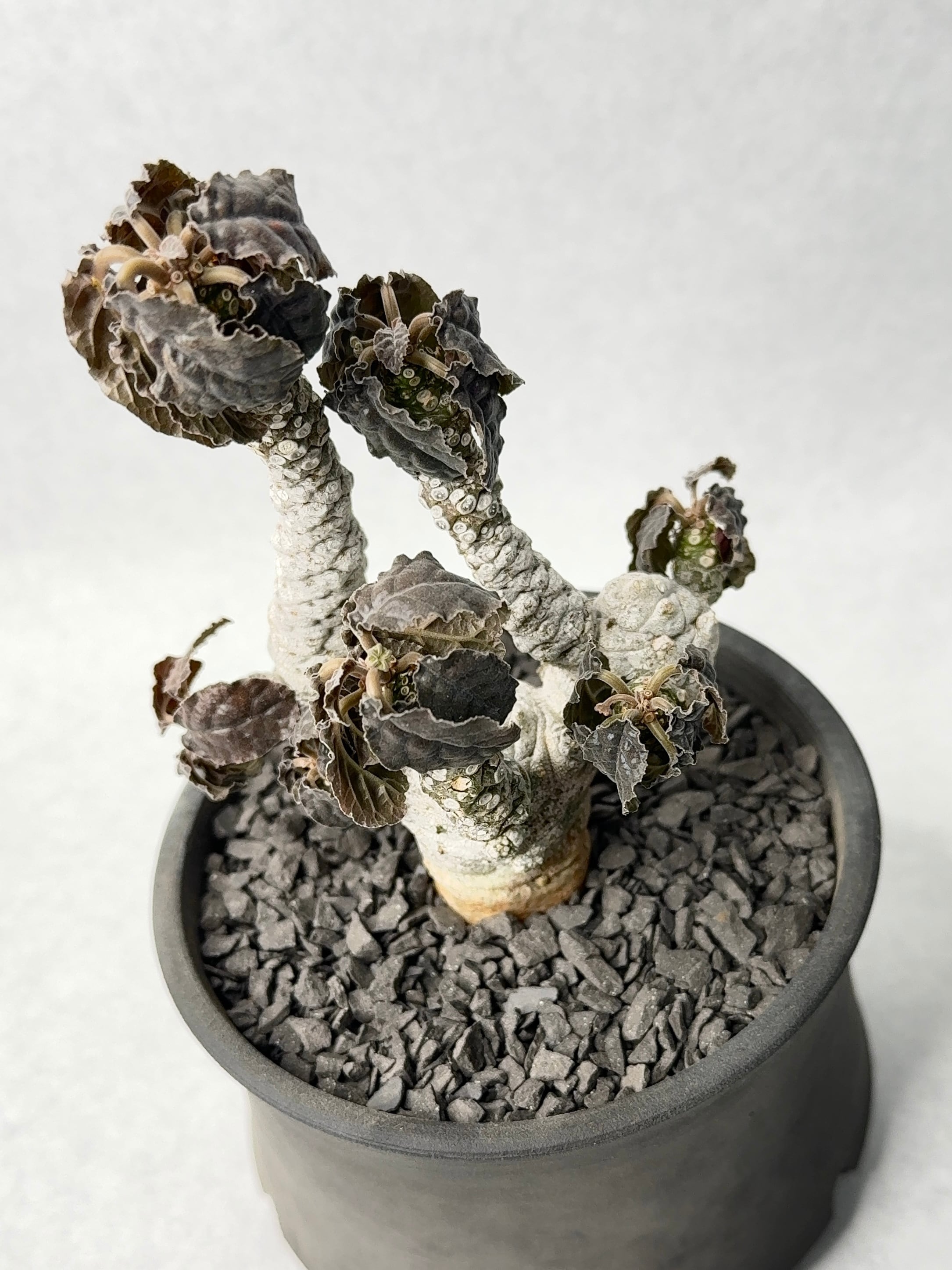 円柱型の塊根部から展開する枝。