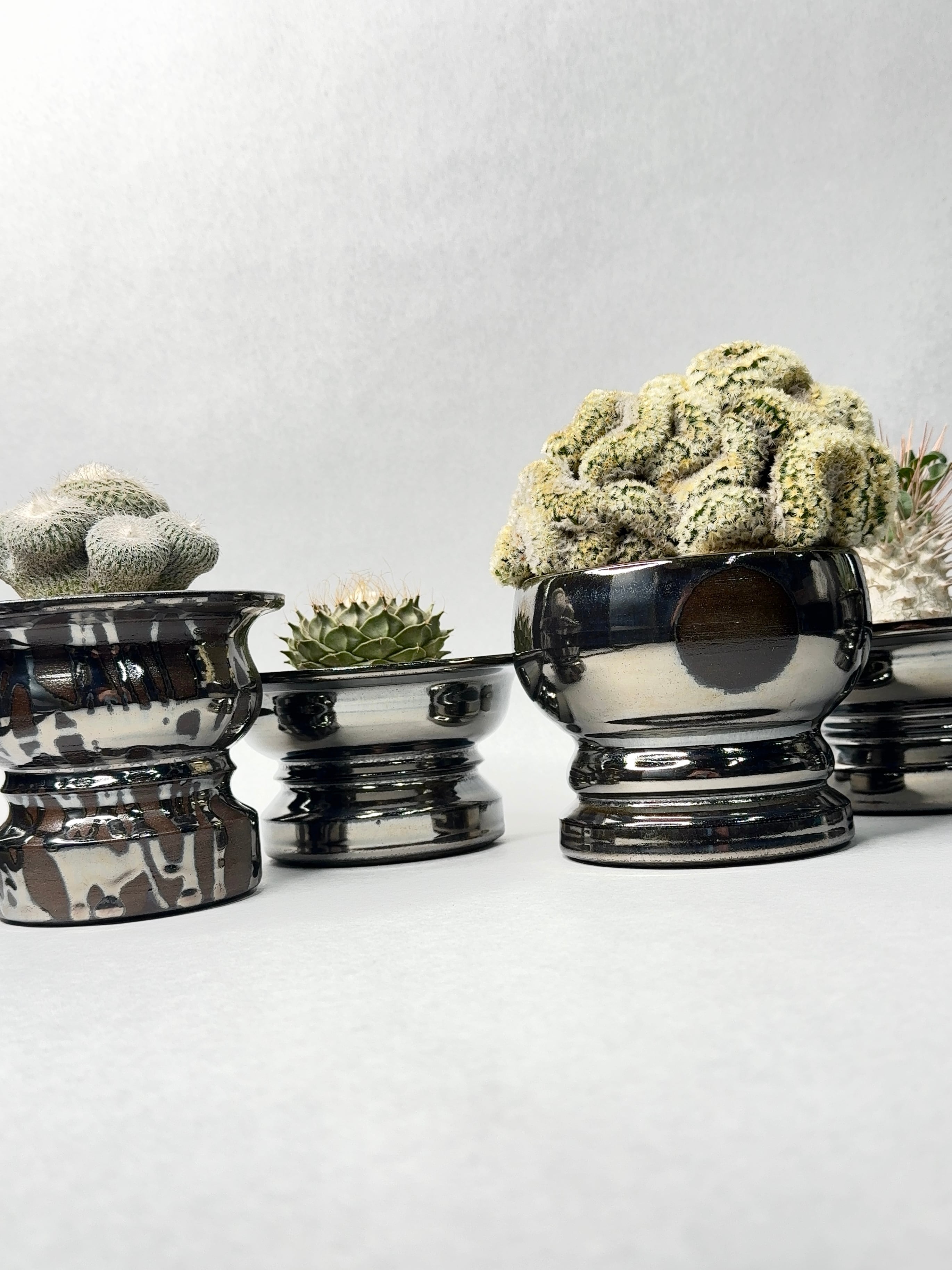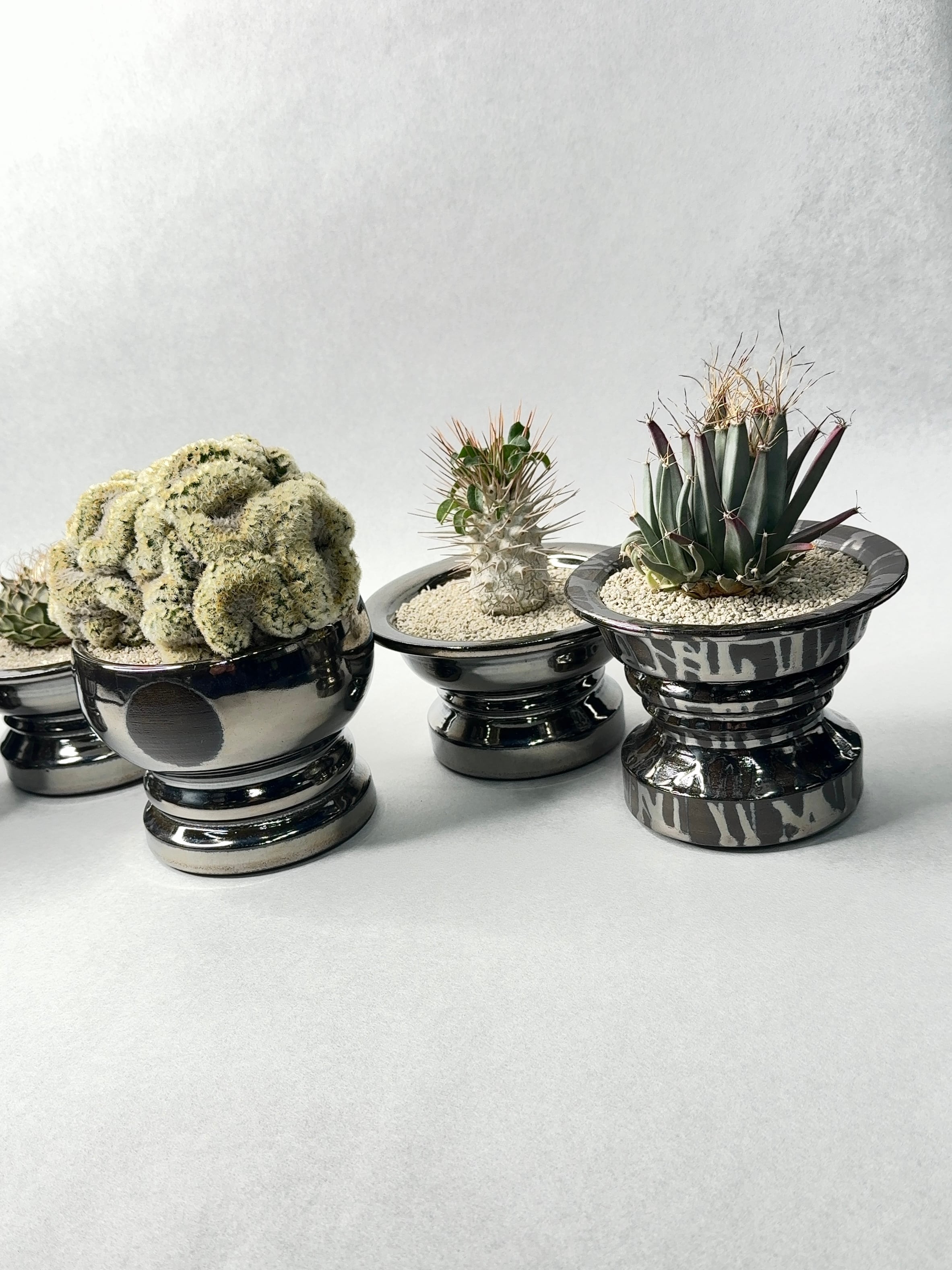 小型で肉厚のサボテンが群生している。