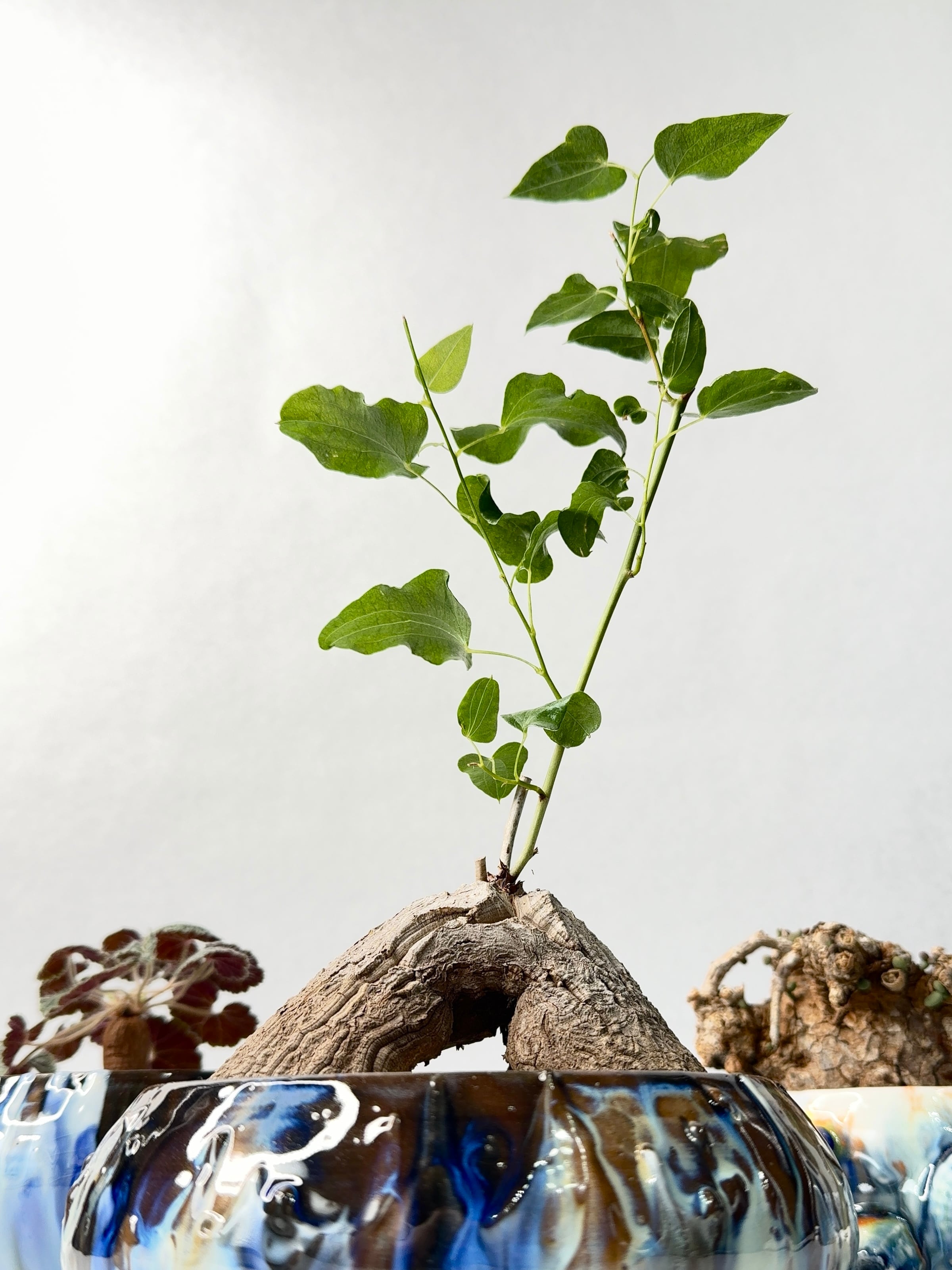 褐色の肌と個性的な葉のバランスがかわいい。