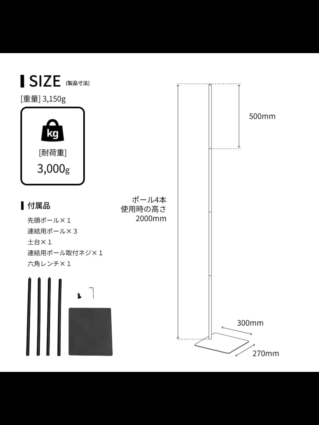【耐荷重】最大3000gまで
