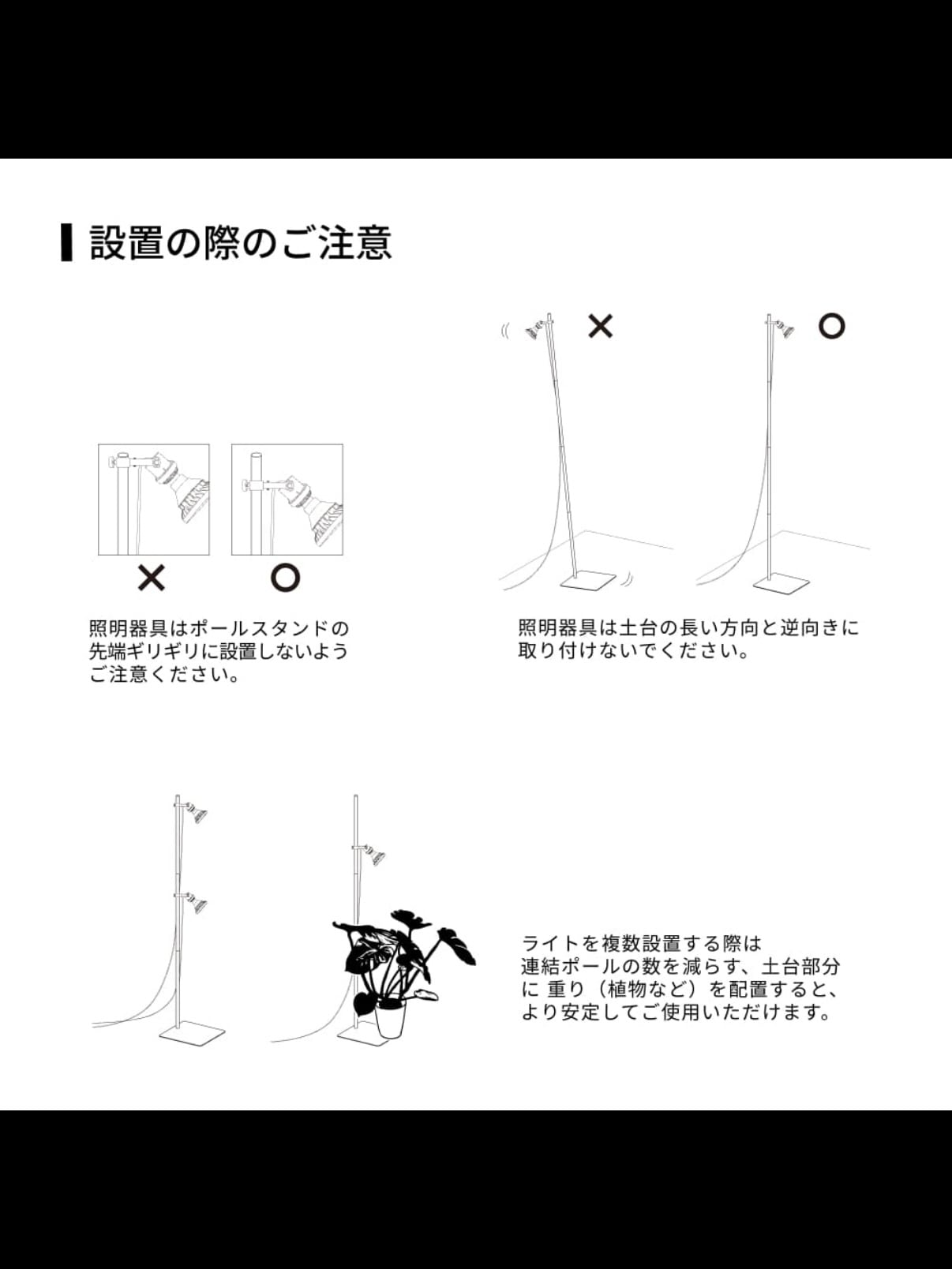 ・連結ポールの数を減らす、または土台部分に重り(植物など)を配置すると、より安定してご使用いただけます。