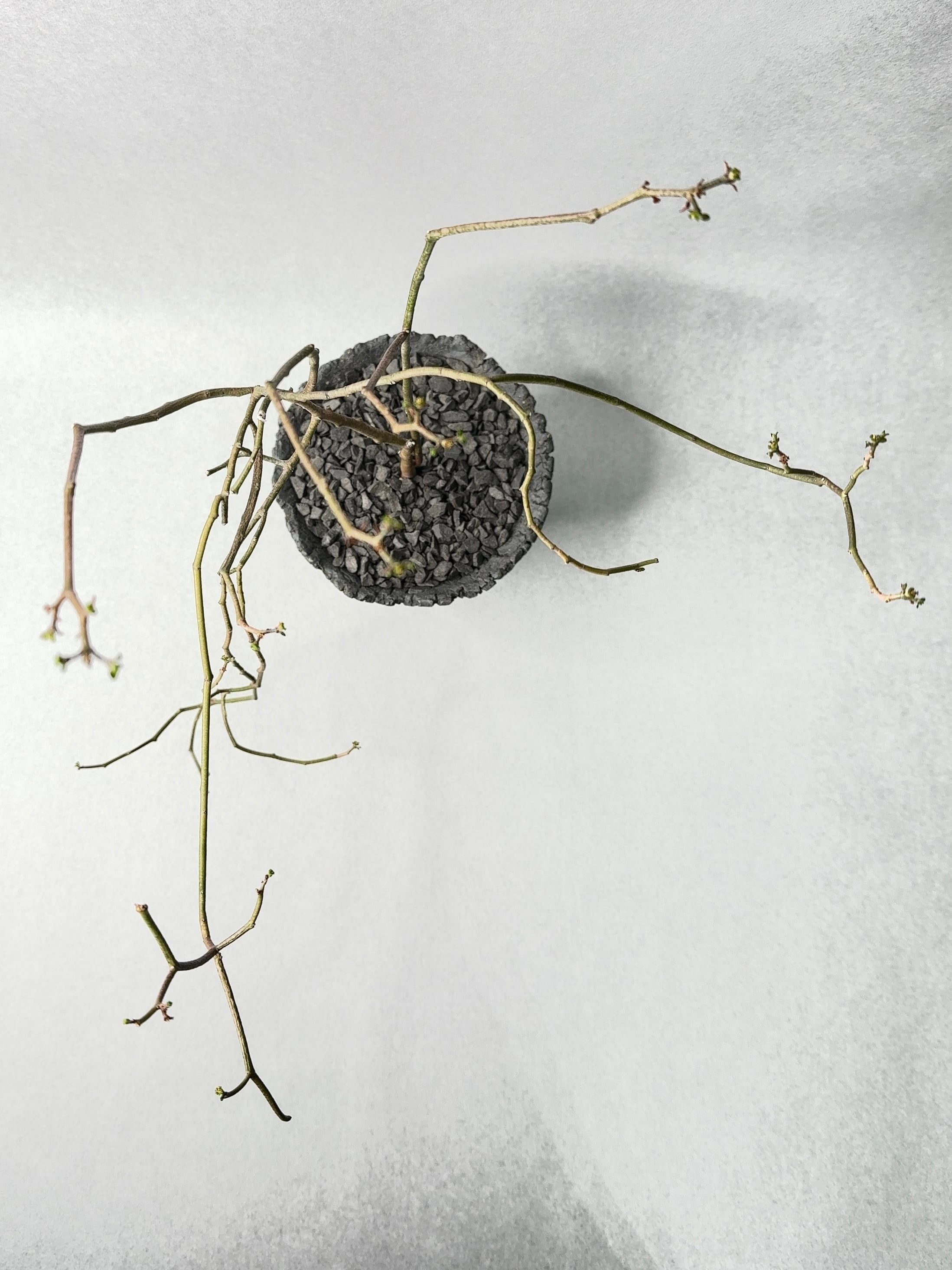 非常に細い枝はしっかりと自立して、