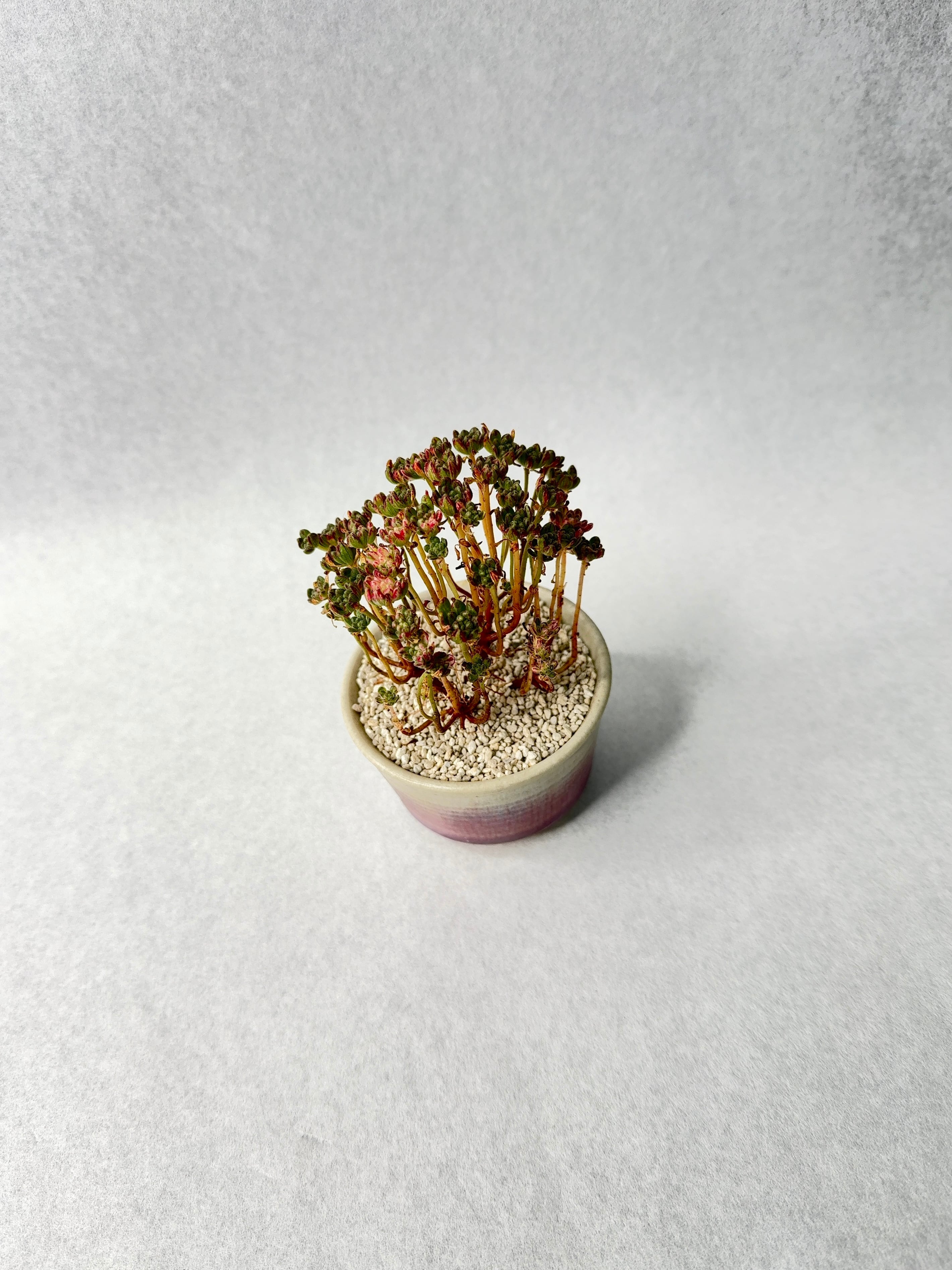 多肉質の葉は、赤〜ピンクに紅葉している。