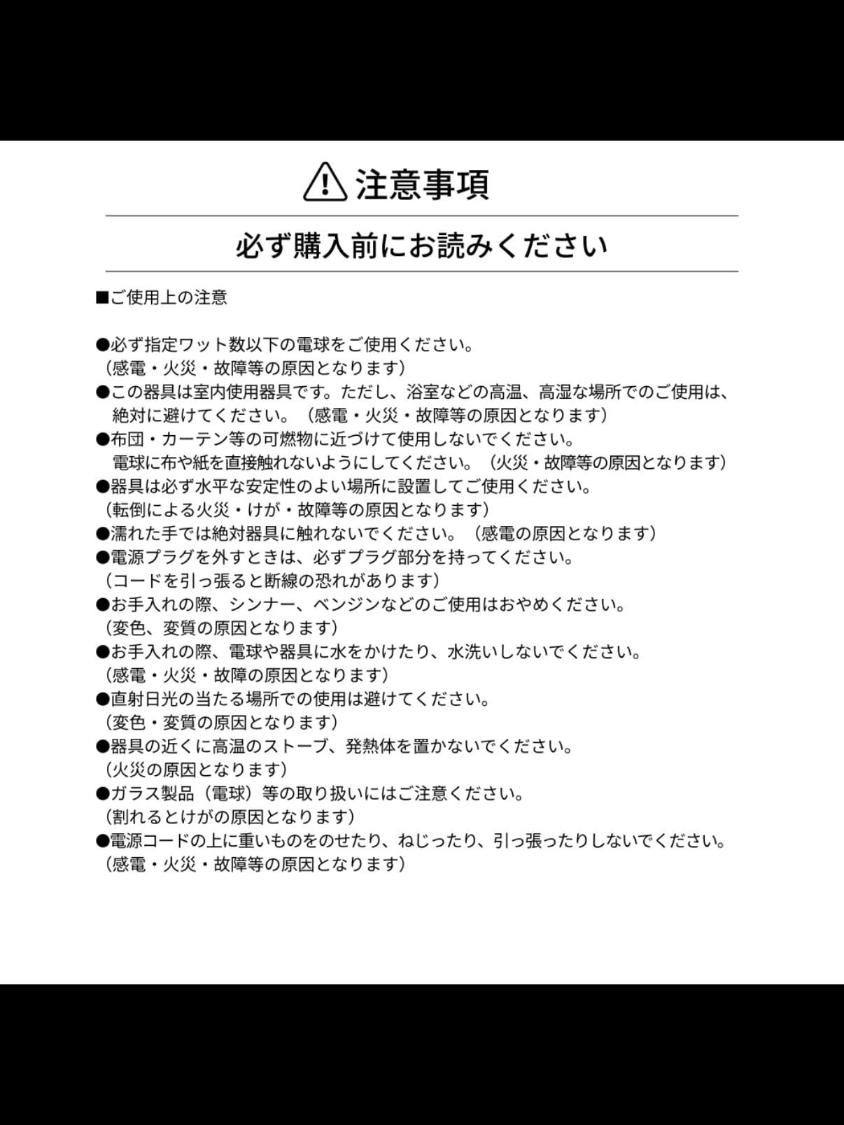 ・必ず指定ワット数以下の電球をご使用ください。(感電・火災・故障等の原因となります)