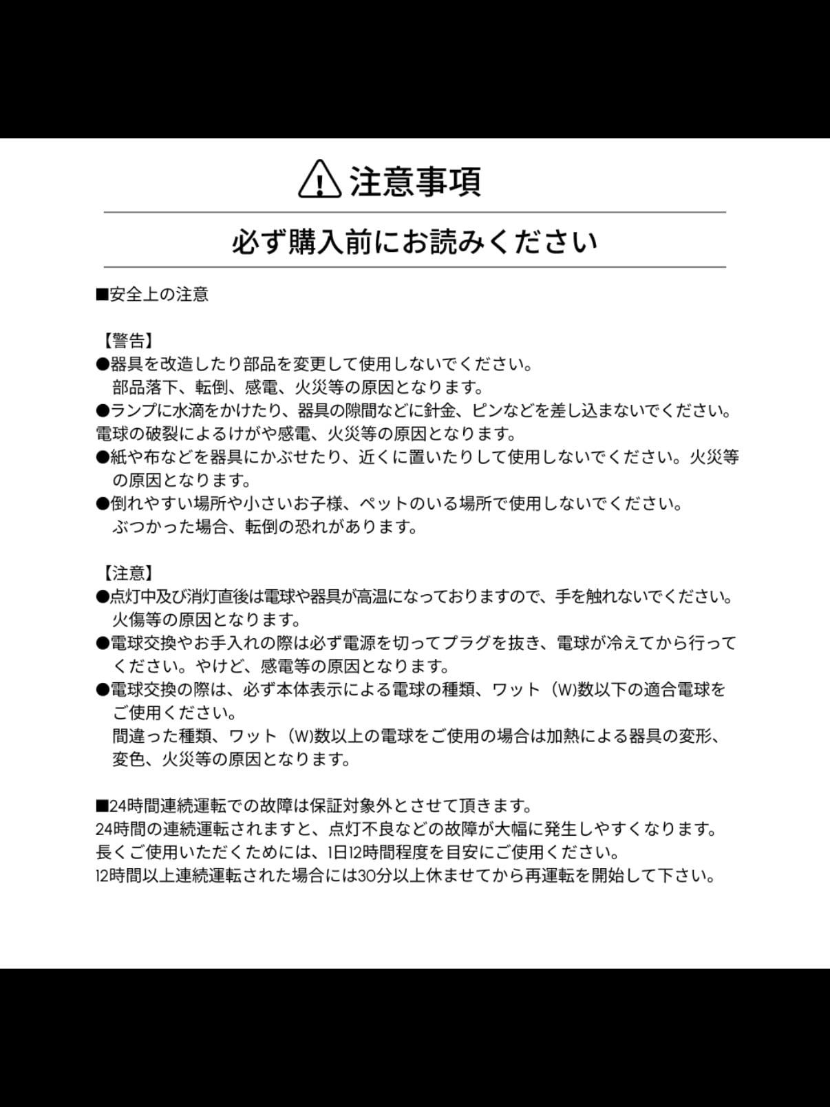 ・ガラス製品(電球)等の取り扱いにはご注意ください。(割れるとけがの原因となります)